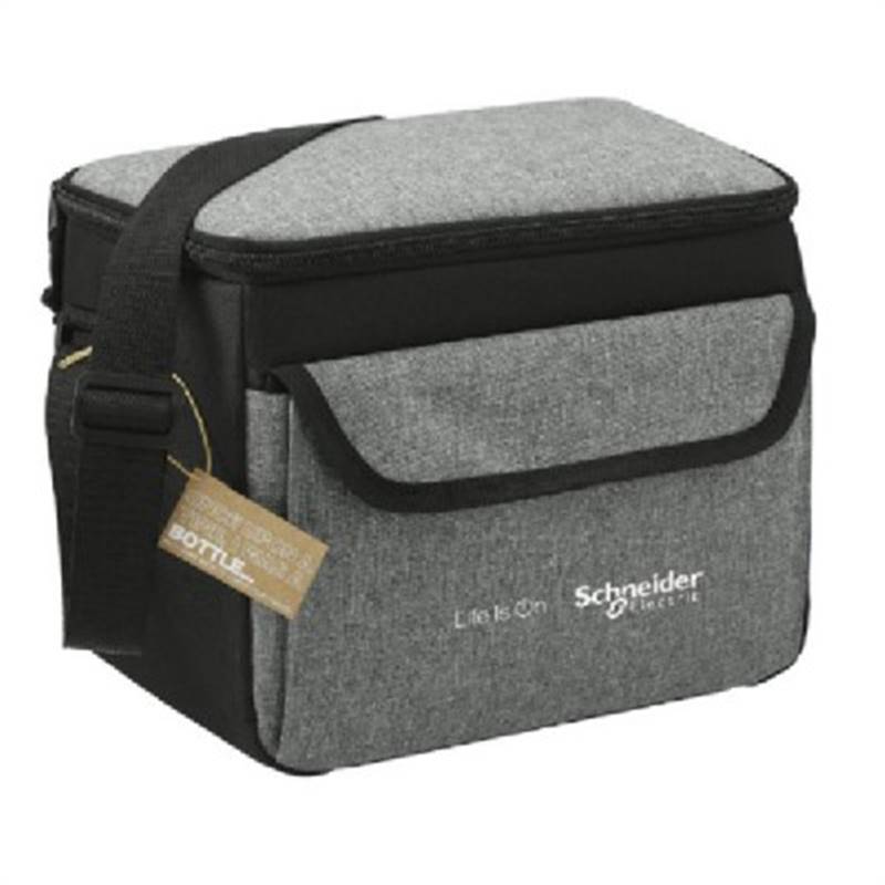 The Recycled Boxy 9 Can Lunch Cooler is the perfect size to hold all your lunch essentials! It has a zippered insulated compartment and a front pocket, plus an adjustable strap for easy carrying. The exterior is made from eco-friendly RPET. Imprinted with the Life Is On | Schneider Electric™ logo.