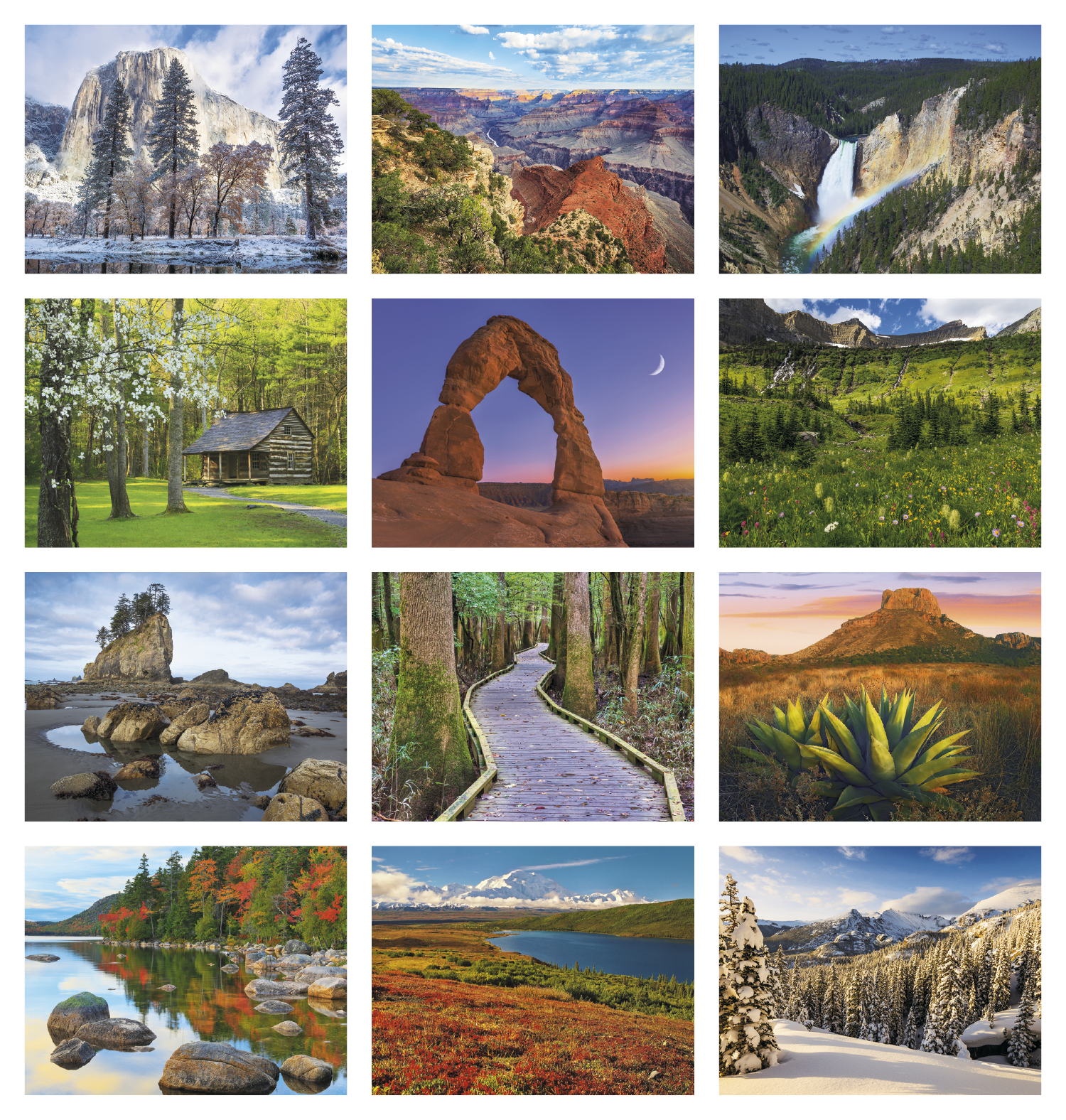 Explore the beauty of America's diverse national parks. Each month lets you escape to another natural wonder. The FSC® label means that the materials used for this product come from well-managed FSC®-certified forests and other controlled sources.