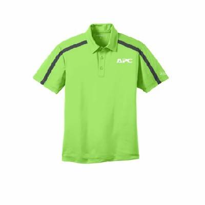 A stripe on the front, back, shoulders and sleeves adds bold contrast to our high-performance polo that wicks moisture and resists snags. PosiCharge® technology delivers exceptional colorfastness and optimal printability. Made with 100% polyester double knit fabric. Features a 3 button placket with dyed to match buttons and open hem sleeves. Embroidered with the APC logo on the left chest and the Life is On I Schneider Electric logo on the right sleeve.