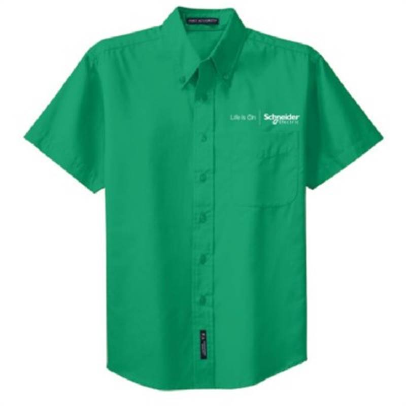 Made from 4.5-oz, 55/45 cotton/poly. Features includebutton-down collar, dyed-to-match buttons, left chest pocketand back box pleat. Wrinkle resistance makes this shirt a cut above the competition. Embroidered with the Life Is On | Schneider Electric™ logo.