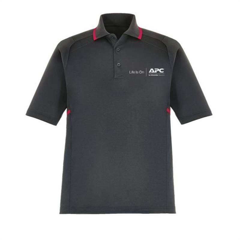 New Extreme Men's Eperformance™ Strike color block snag protection polo. 100% polyester snag protection tricot with moisture-wicking, anti-microbial and UV protection performance, heat-sealed label, three-button placket, contrast shoulder inserts and matching flat knit collar. Machine wash and tumble dry, needs little or no ironing. Imprinted with the Life Is On|APC logo.