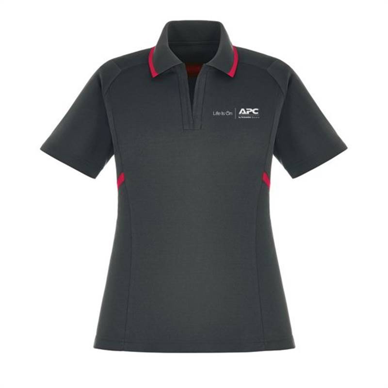 New Extreme Ladies' Eperformance™ Strike color block snag protection polo. 100% polyester snag protection tricot with moisture-wicking, anti-microbial and UV protection performance, heat-sealed label, three-button placket, contrast shoulder inserts and Y-neck with matching flat knit collar. Machine wash and tumble dry, needs little or no ironing. Imprinted with the Life Is On|APC logo.