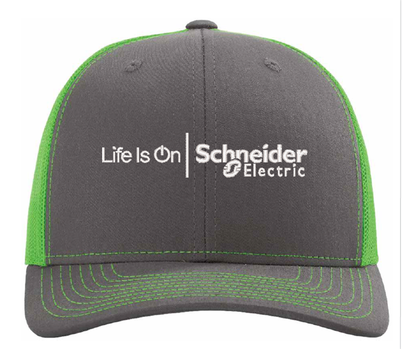Designed with purpose and everyday style, this trucker cap in Charcoal Neon Green features the Life Is On | Schneider Electric logo and a classic mid-profile fit. Made with a 60/40 cotton/poly front and 100% polyester mesh back, it offers breathable comfort and a structured, six-panel design. The pre-curved bill and adjustable snapback ensure a custom fit. As part of the Sustainable Style collection, this cap supports a responsible mindset through an official partnership with Captains for Clean Water blending style, function, and environmental commitment.