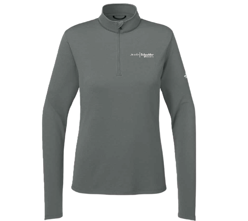 Designed for performance and comfort, this women's 1/4-zip pullover in Smoked Pearl Grey is the perfect layer for active days or everyday wear. Featuring Life Is On | Schneider Electric branding, it's made from 100% recycled polyester and powered by FlashDry technology to wick moisture and keep you cool and dry. With a zip-through cadet collar, set-in sleeves, and a sleek reverse coil front zipper, this piece combines technical function with a polished fit. Finished with The North Face heat transfer logos and sustainable construction, it's as eco-friendly as it is adventure-ready.