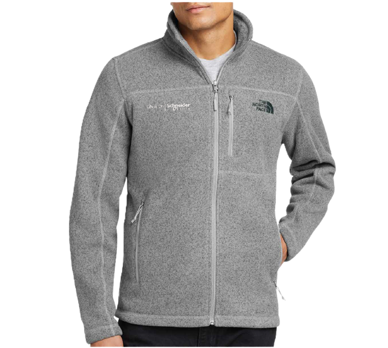 Cozy up in sustainable style with this men's heavyweight fleece jacket, crafted for warmth and breathability. In TNF Medium Grey Heather and featuring the Life Is On | Schneider Electric logo, this jacket blends a soft, sweater-knit exterior with a brushed fleece interior for ultimate comfort. Made from 53% recycled polyester, it includes a reverse-coil front zipper, zippered hand pockets, and a secure-zip chest pocket for added functionality. Finished with The North Face contrast logo on the chest, it's the perfect layer for casual wear or cool-weather adventures.