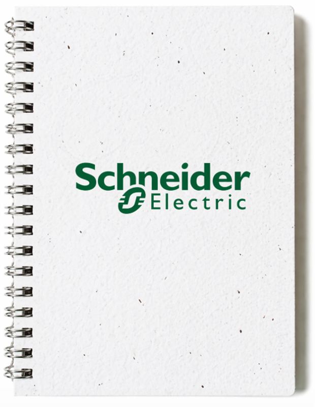 Sustainable and functional. The Flourish Journal combines eco-conscious design with practicality. This 4"x6" spiral-bound journal features plantable seed paper covers made from 100% recycled materials, embedded with wildflower seeds?just plant, water, and enjoy! The 40 text-weight pages are made from recycled paper, and the journal is printed with eco-friendly inks that won't harm the seeds. It?s the perfect sustainable gift or tool for those who want to leave a positive impact on the planet. Branded with the Schneider Electric? logo. Material: Recycled Paper, Seed Paper Minimum Order : 100 ? Please note: Orders received during business hours will ship within 10-20 business days. Due to the special customization of this particular item, this product cannot be exchanged or returned.