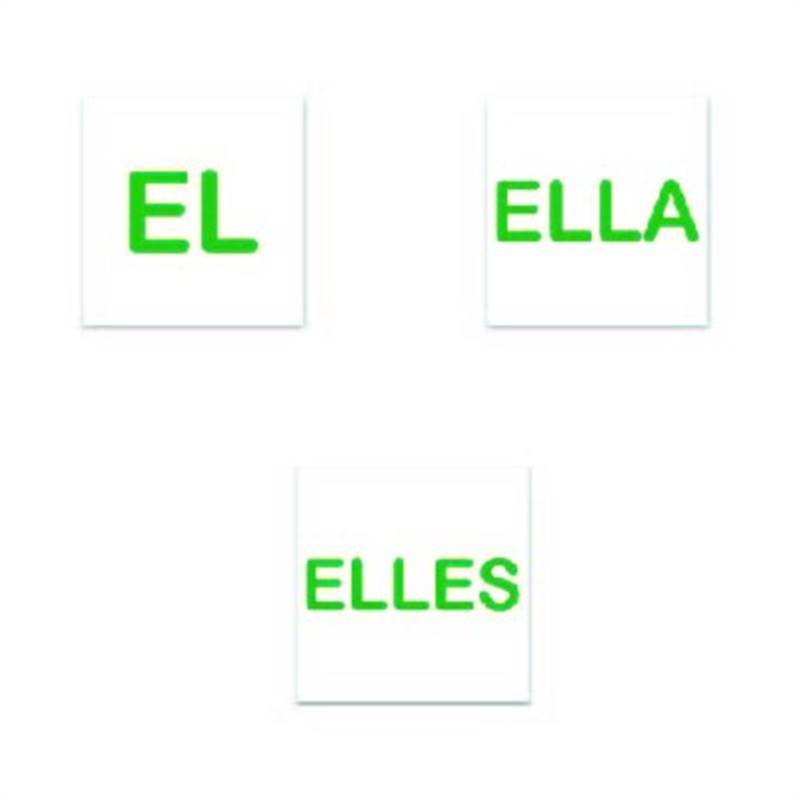 1.5" X 1.5" repositionable decal. Minimum order of 100 decals per pronoun. Please select a pronoun from the Customization field. Pronoun choice of EL, ELLA, and ELLES.