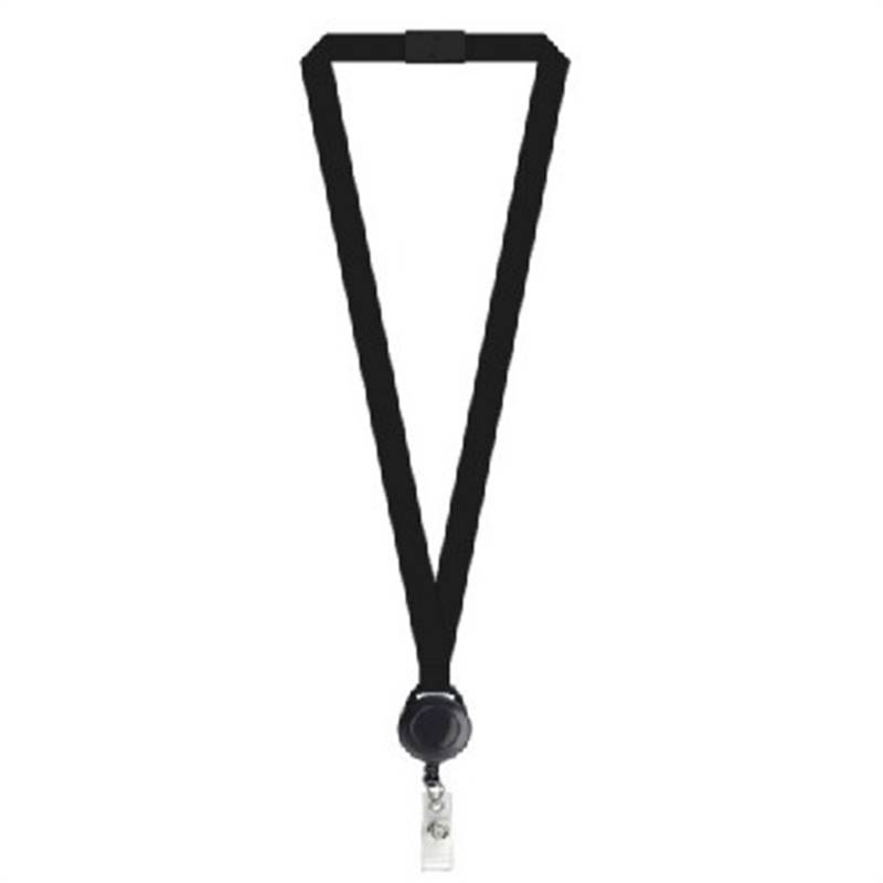 3/4" Polyester lanyard with badge reel and plastic breakaway release. Blank product, no logo imprinted.