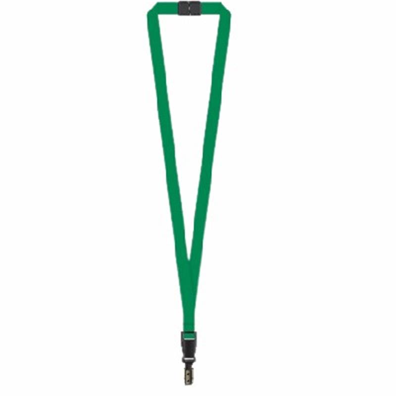 3/4" Polyester lanyard with bulldog clip and plastic breakaway release. Blank product, no logo imprinted.
